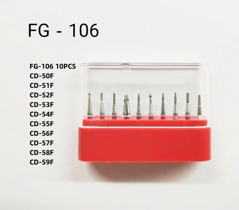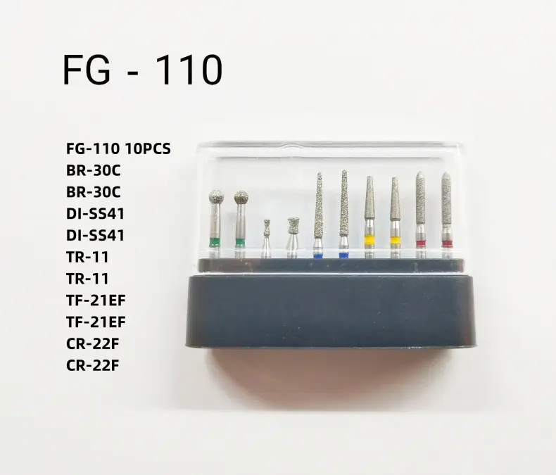 6) Diamond burs with slender instrument and long, narrow neck Guarantee better exposure operation vision, dental prepared accurately to the deep dentin transition, ensure minimum damage to the teeth.